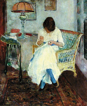 in a demure, feminine pursuit - sewing. This was a popular topic that