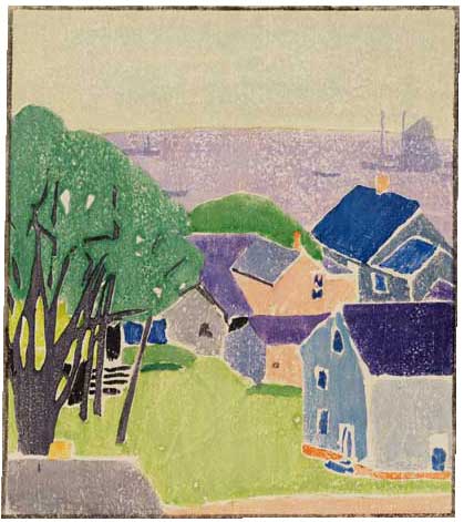 Edna Boies Hopkins, Mountain Women (aka Women in White), 1917, color white-line wood block print, 10 x 9. Provincetown Art Association and Museum 2008 Fall Consignment Auction.