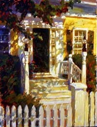 Simie Maryles began her painting career while still a very small child in the suburbs of New York City, doing drawings to entertain herself and losing herself often in the art section of the local public library, ingesting all the great art she could find in the books. Following a year at State University of New York at Binghamton and several months travelling in Europe, she began her formal art training at The Ecole des Beaux Arts in Paris, France, then returned to New York to study painting at The Art Students' League of NY with David Leffel, Everett Raymond Kinstler and Vincent Malta, and at Pratt Institute in Brooklyn, NY. Simie Maryles first came to Provincetown, on Cape Cod, MA, in the summer of 1974 to work as a pastel portrait artist in the tourist trade. It was there, in Provincetown, that she first began painting landscapes "en plein air" and became intoxicated with outdoor painting and color. Her style of painting, which up until this time had been more classical and tonal, reflecting the urban environment she had come from, began to shift to a much more intensely colorful and "broken-brushstroke" approach, clearly influenced by the bright clear light at the seashore and also the community of Impressionist painters living on Cape Cod. The evolution in Maryles' painting style and subject matter has continued to grow, starting with pastel landscapes of gardens and marshes in sunlight, to a full exploration of mixed media pastel painting (such as acrylic and pastel, sometimes with added marbledust) and finally to a return to oil painting. The sunny garden motif widened to include the moodier romance of evening paintings and then winter night paintings with wind and window lights. The oil paintings, like the pastels, display a skillful use of painting technique that employs broken strokes of brilliant pigment over colorful underpainting. Most notable in Maryles' painting is her use of light, both sunlight and lamplight, and her ability to evoke powerful emotions. In 1998 Simie Maryles, together with her husband, sculptor and blues musician, Moe Van Dereck, opened their own gallery in Provincetown. Previous to owning her own gallery, Simie Maryles had shown her work in galleries in Boston, Los Angeles, Simsbury, CT, and in Wellfleet and Provincetown on Cape Cod. She has participated in juried and museum exhibitions in New York, Washington, DC, and Los Angeles. In addition, her work has been included in numerous books published by Quarto Publishing of London, England, and North Light Books, USA. Maryles has successfully completed corporate commissions in Boston and in New York City. Her paintings are included in private and corporate collections throughout the US and in Europe. Simie Maryles currently resides in Provincetown, MA with her husband and their two sons. Text courtesy Simie Maryles Gallery |