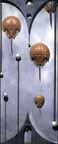 The latest assemblages continue to create the sense of miniaturist surrealistic stage sets – or even temples – wherein her repeating symbols of moon, sphere/egg, mirror/