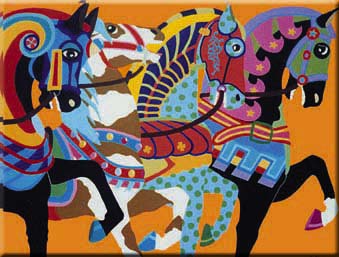 Shulman's self-taught and striking hard-edged style is immediately identifiable. More than 2,000 of his acrylic, oil or enamel paintings on canvas have been sold and are featured in museums, universities and corporate offices, as well as in prized private collections around the world. |